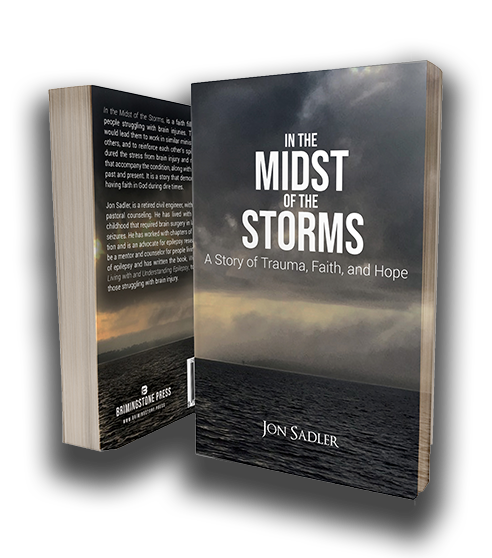 In the Midst of the Storms is an incredible love story based on the real-life events of two people struggling with brain injuries; the woman's from a stroke and the man's from seizures and surgery, and their remarkable recoveries along with their becoming neighbors. Their life experiences lead them to work in similar ministries to bring hope to others, and to reinforce each other's spiritual faith. They now endure the stress from the unknowns of epilepsy, the stigmas that accompany the condition, along with facing the traumas of the past and present.